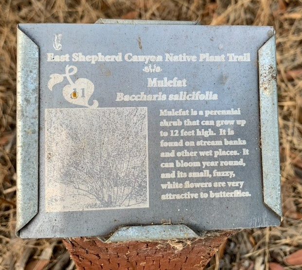 The East Canyon, which I hit first, was definitely the crown jewel and hence its inclusion in the book. It was the primary goal of the morning which is why I did it first – no matter what happened next I could check of hike #92 from my list. A girl’s got priorities. This part of the trail passes Dishwasher Pond, which was unsurprisingly dry here in mid-October. Near the end of the path little signs had been posted for a “Tierrasanta Plant Identification” trail that I learned later was set up by a Girl Scout troop.