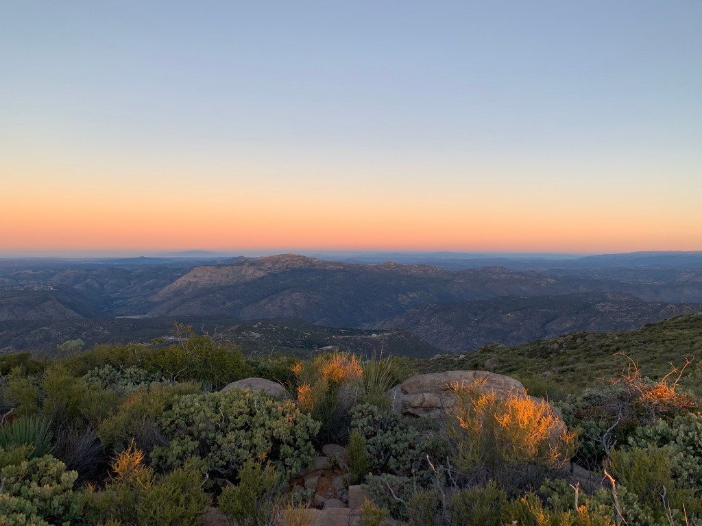 This is the third time I’ve hiked Viejas Mountain. The first time was in 2018 when I was not in great shape; my moving time stats indicate that it took me nearly three hours! The second time was this past summer, when I was in the same condition I’m in now; but it was a JMT training hike and I was hauling a 30lb pack. It took me 2 hours and 13 minutes. Today Kali & I practically ran up and back down the hill and clocked in at under two hours, FTW!