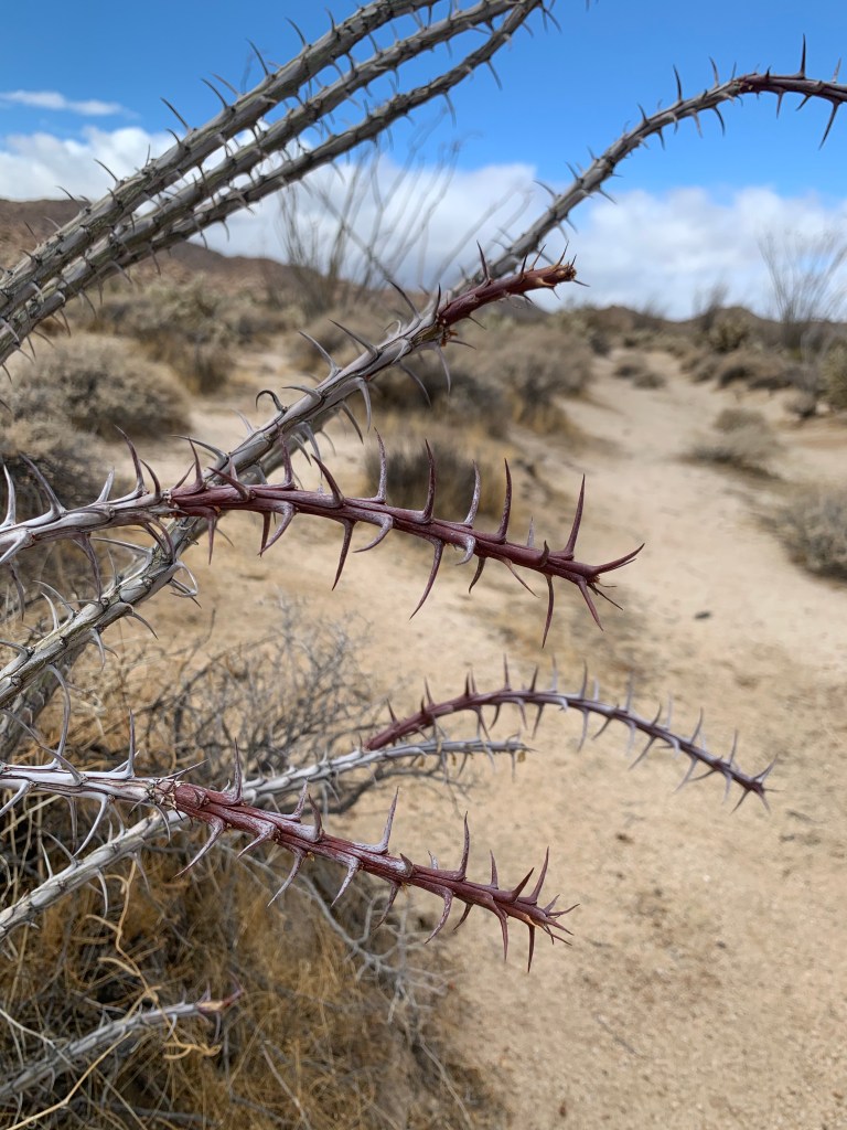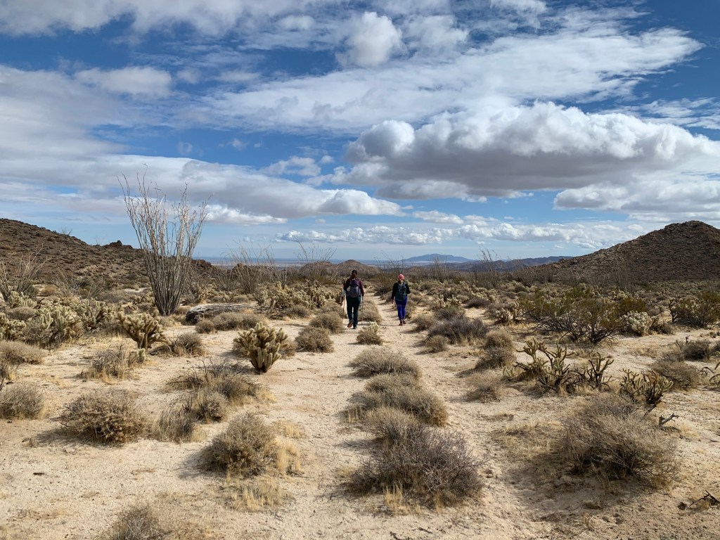 Today’s original hike plan was to tackle two challenging desert peaks: The Sombreros (Sombrero Peak and False Sombrero Peak). We had routes all mapped out and were ready to go. But at the last minute, due to a San Diego “winter storm,” we decided to change our plans. The trail head for these hikes is above 2000 ft, and the peaks themselves are around 4000. With rain in the forecast, and snow predicted above 4000 feet, we decided it would be prudent to refocus on the “low desert.”