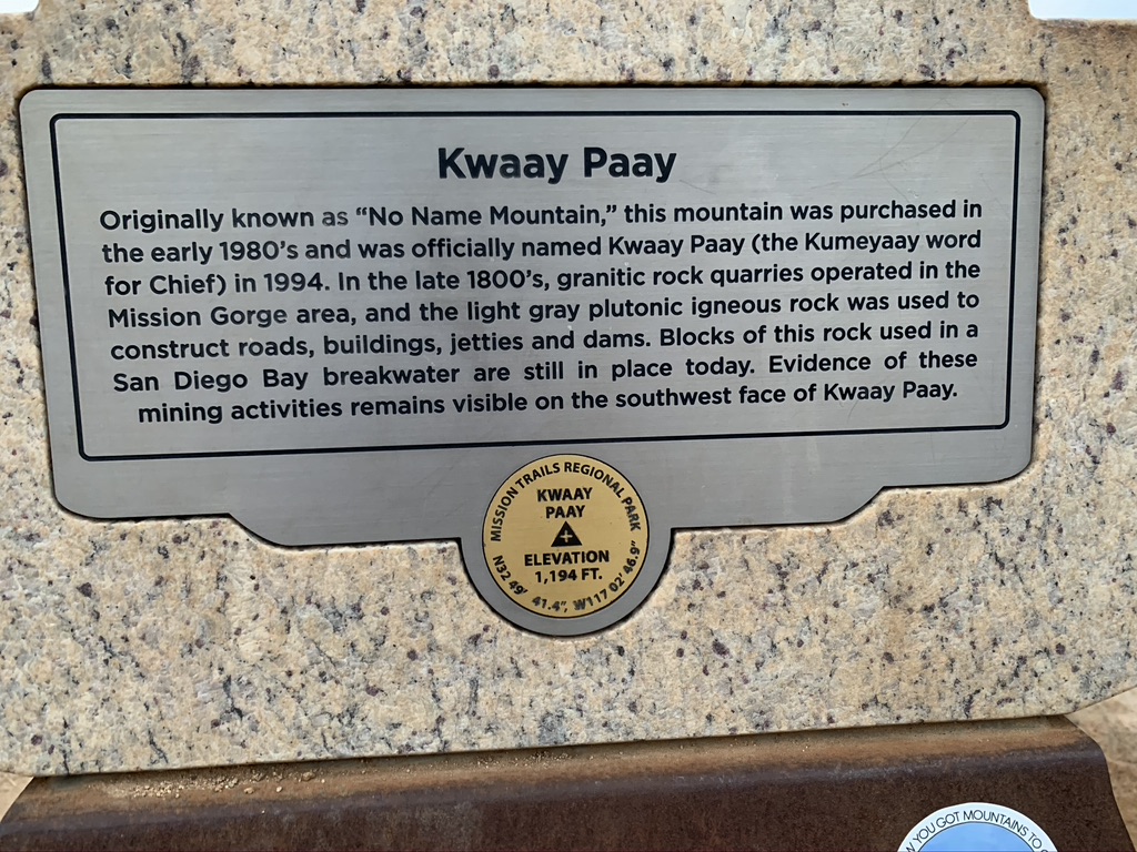 For our weekday hikes that we are squeezing in before work, I am focusing on the low-hanging fruit, knocking the closest, shortest hikes off the list first. (We are balancing these out by doing the hardest peaks on the list on the weekends this month.) Today’s hike, Kwaay Paay Peak in Mission Trails Regional Park, qualifies as some pretty darn low-hanging fruit.