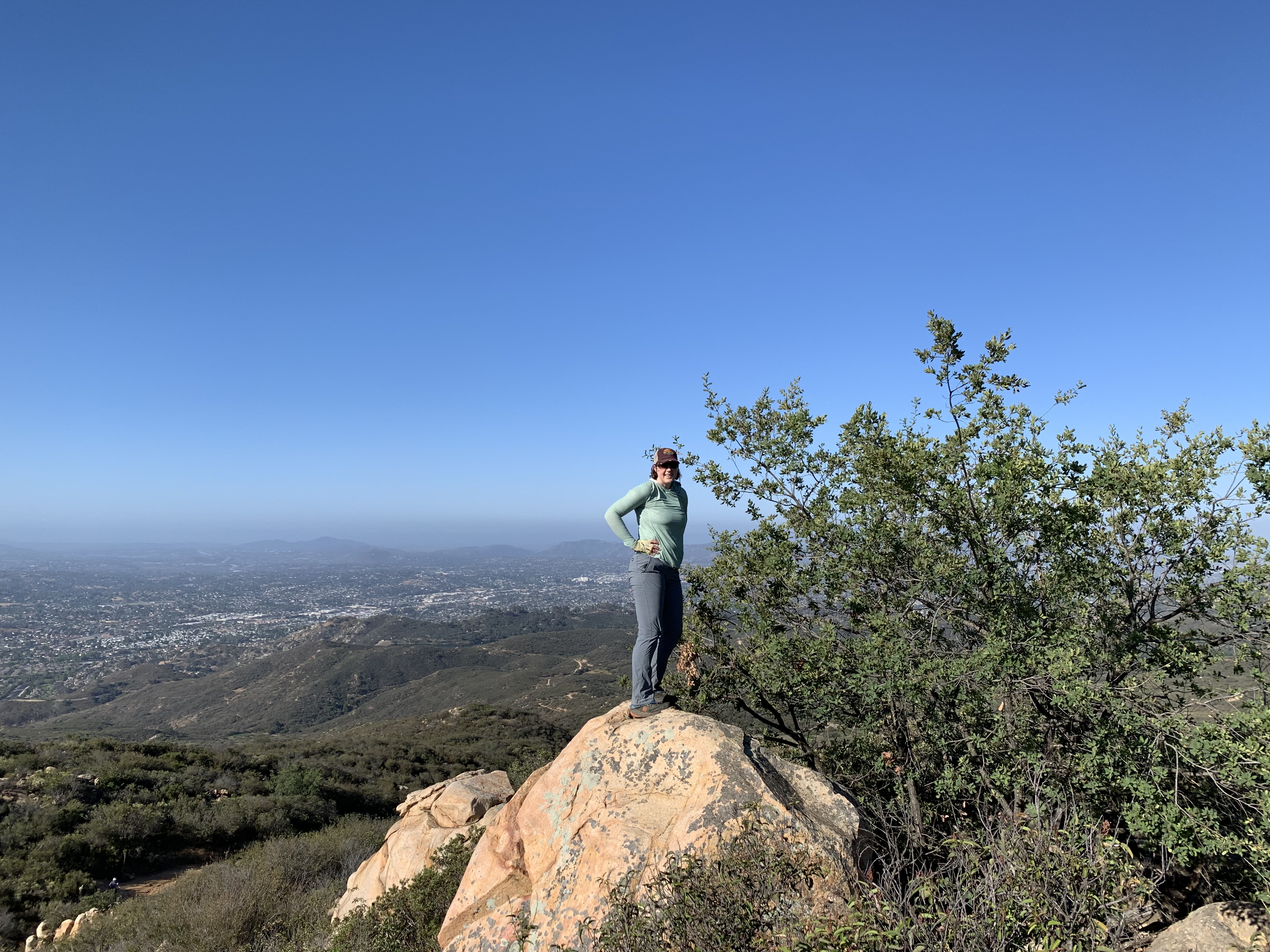 Yay, another relatively cool weekend to knock a few more low-elevation peaks off the list before it gets too hot! All three peaks this weekend were up the 15, each progressively further away. On Saturday we started with Black Mountain in the Rancho Penasquitos area. I have dabbled near this peak before, once or twice bike riding in the area, and a couple of hikes – but never to the peak, at least as far as I can remember. There are multiple trails up to this peak, and we picked the Nighthawk trail starting from Hilltop Community Park. We made quick work of the gradual climb, reaching the antenna-covered top in no time. We encircled the summit, taking a little side slope back to the trail and were back at the cars in about an hour and a half. Peak #67.