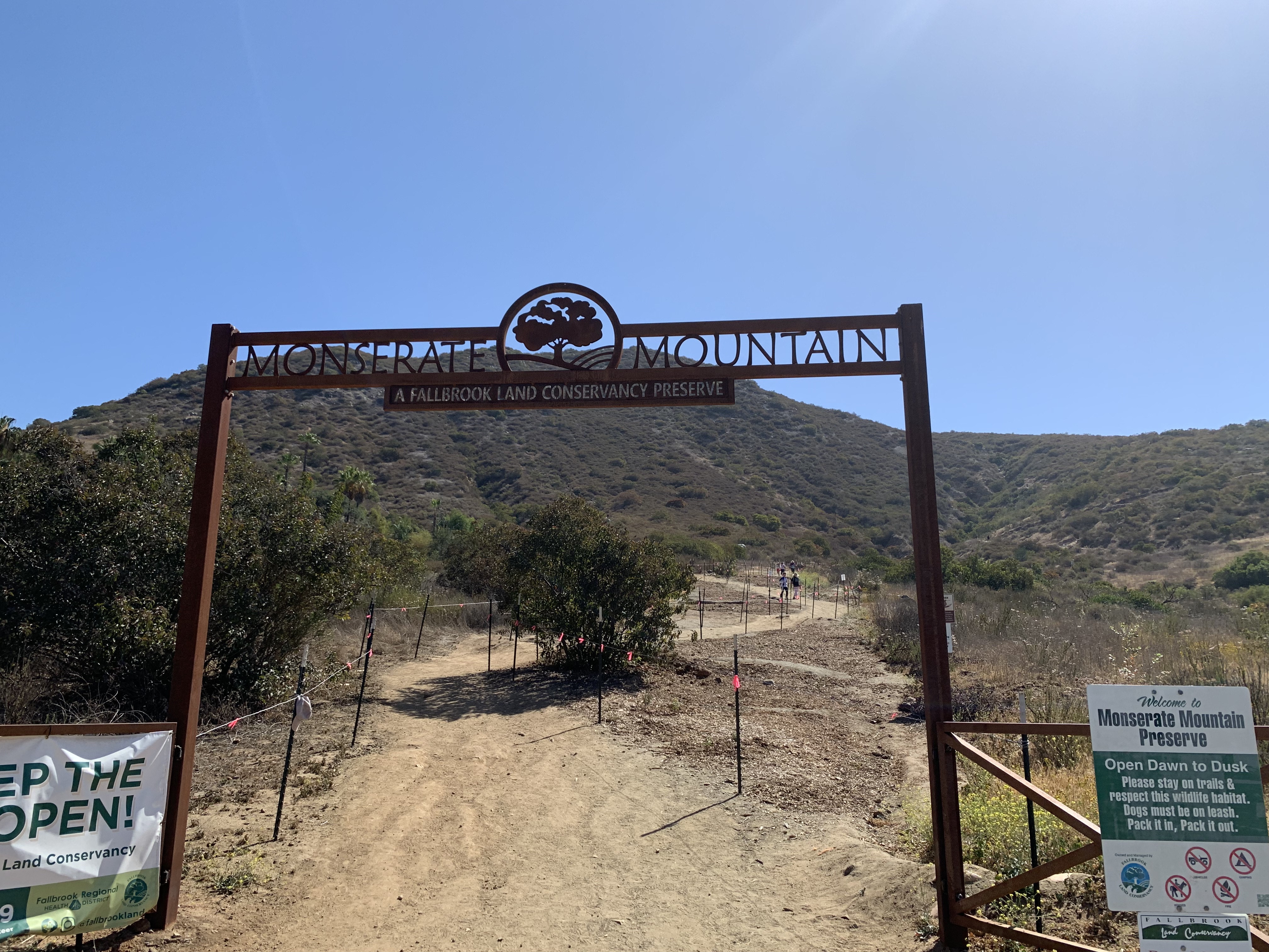 Kali & I continued northward up the 15, to Fallbrook and the Monserate Mountain trailhead. As the crow flies, this is one of the furthest peaks from my house, along with the other peaks along the northern border of San Diego county – so it was good to get it DONE. By the time we got to the trail, it was getting warm – there is a reason we usually hike so early in the day! There were plenty of people on the trail despite the blazing sun. We had heard that this trail was the Cowles Mountain of North County, so it was not surprising.