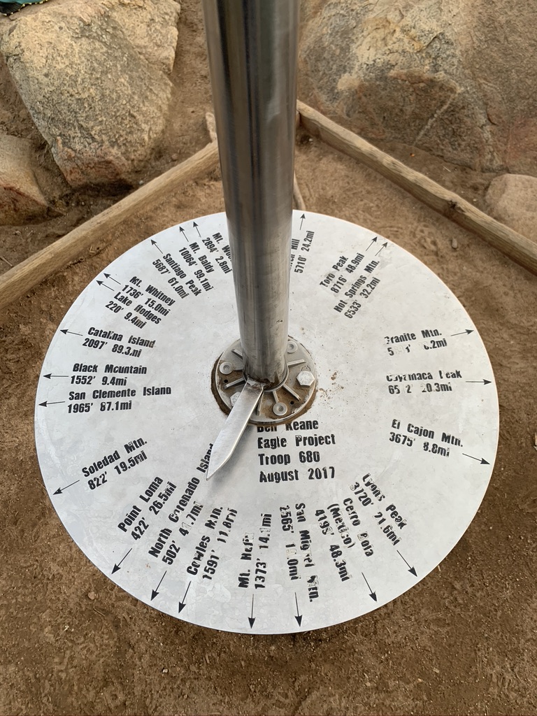 The first peak, Denk Mountain, is a lovely well-maintained hillside in a Carlsbad neighborhood. There are a few trailheads to choose from, and we took the Switchback Trail, which starts up from Corte Romero Road. As the name suggests, it zigzags gradually across the hillside to the summit. After yesterday’s constant need for navigation and watching our footing on steep, loose scree, it was nice to be able to relax and follow a well-marked, well-graded trail. The top was a wide-open area with a picnic table and expansive views of the Batiquitos Lagoon and the ocean beyond.